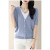 Haut côtelé pour femme Fausse pièce deux pièces Manches courtes Col en V Blouse