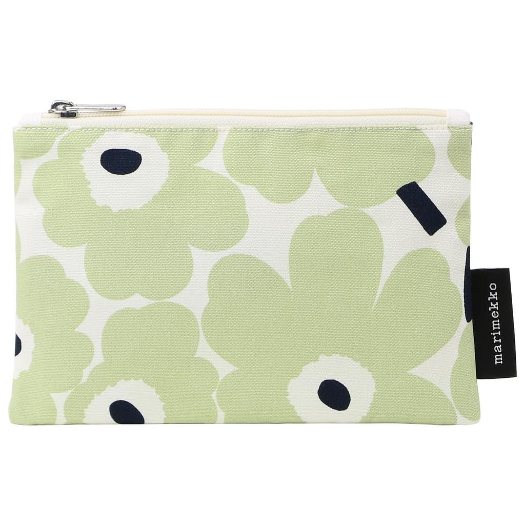 Marimekko Mini Unikko Kaika Pouch, 21x14cm (Dark Blue x Off-White x Sage) 073355 165. This stylish, floral-patterned cosmetic pouch features a