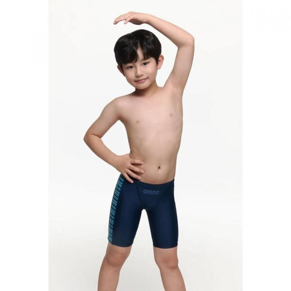 The Boys' Tiny Stripe Kids 4-Part Swimsuit offers a lightweight material for comfortable wear. The simple navy color is complemented by a striped design, adding a touch of sophistication. This item is suitable for swimming and water play during the summer.