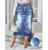 Women's Spring Autumn Elegant Modest Plus Size Skirts Fashion Women Silm Fit Dress Imitation Denim Print Bag Hip Skirt