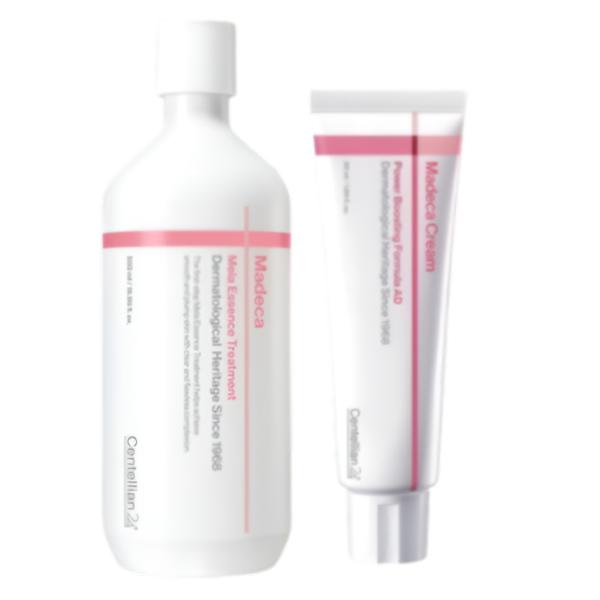 This powerful skincare duo combines intensive barrier repair with brightening care for clearer, healthier-looking skin. The Madeca Cream Power-Boosting Formula Advanced is enriched with Centella Asiatica to soothe irritation, deeply hydrate, and strengthen the skin barrier. The Mela Essence Treatment helps improve uneven skin tone and dullness while refining texture for a smoother complexion. Together, they deliver balanced hydration and radiant glow for daily skincare maintenance.