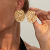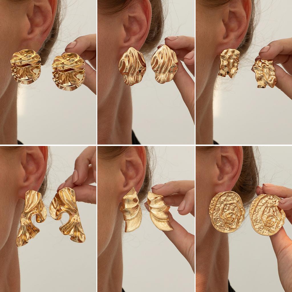Wind Design Liquid Metal Pleated Stud Earrings, Fashionable Irregular Percussion Pattern Rose Earrings