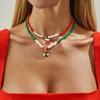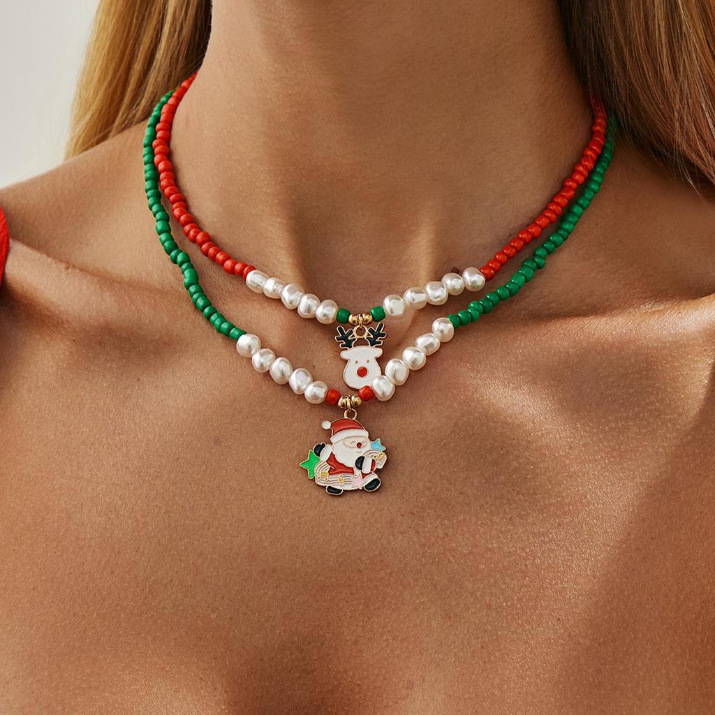 Collier clavicule perles nacrées imitation de Noël, Style festif empilé avec un collier Père Noël Cerf