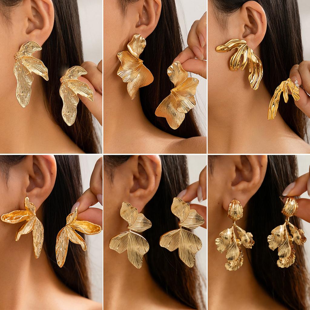 Retro Cold Wind Leaf Stud Earrings Female, Fashion Design Sense Metal Flower Earrings Earrings