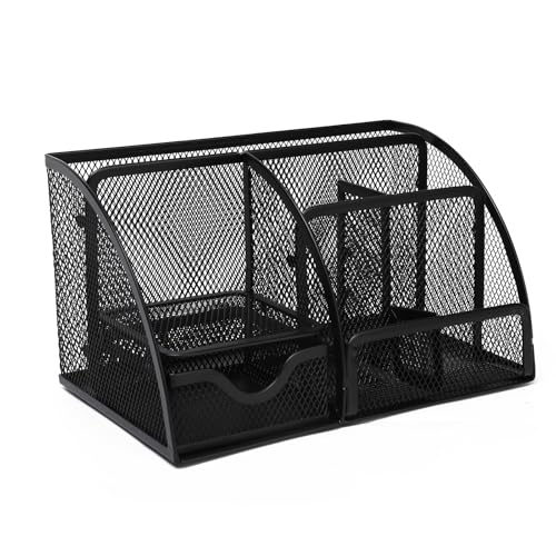 Neomate Metal Mesh Pen and Pencil Organizer | 6-Compartment Stationery Storage Box for Home & Office Accessories