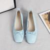 Flat Shoes Women Plus Size 44 Spring Square Head Shallow Mouth Single Shoes Flat Sole Versatile Soft Sole Bow Women's Shoes