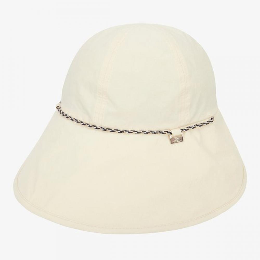 The North Face Official NE3HR10A Women's Bonnet Hat in CREAM is a women's bucket hat suitable for outdoor activities in summer. Made from lightweight fabric for a comfortable fit, it is designed with a feminine silhouette. The long brim effectively blocks sunlight, and the wire inserted in the brim allows for shape adjustment. The string adds a stylish accent while the chin strap keeps the hat secure against the wind. The internal sweatband is made from COOLMAX material, quickly absorbing and drying sweat for comfort. It is decorated with a logo metal patch for an elegant touch.