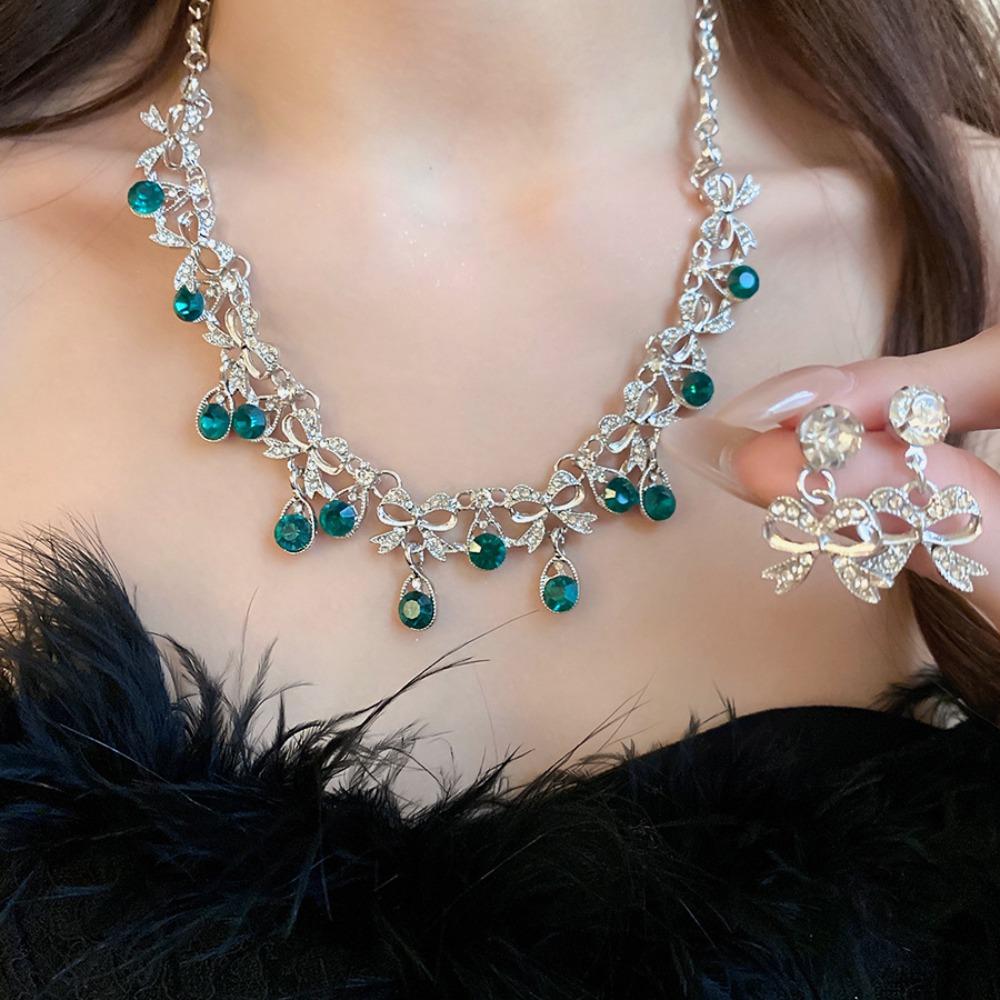 2 pieces Bow Rhinestone Jewelry Set Inlaid Crystal Necklace Set Necklace Earrings Set Party