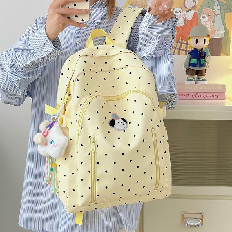 Korean polka dot schoolbag female college student versatile cute computer backpack lightweight junior high school student travel backpack tide