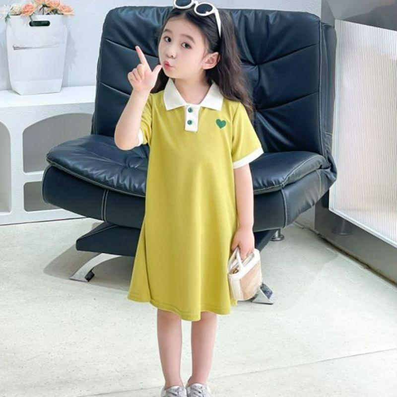 Girls Lapel Dress Summer Girls Solid Color POLO Skirt A-line Skirt Short-sleeved Comfortable Home Service