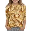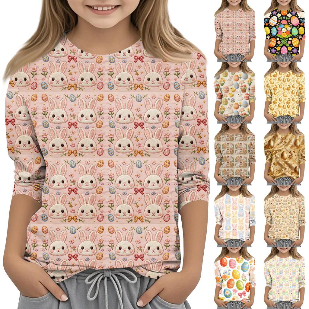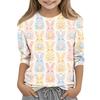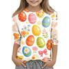 Haut décontracté pour enfants à manches sept-quarts, imprimé Pâques, col rond, imprimé