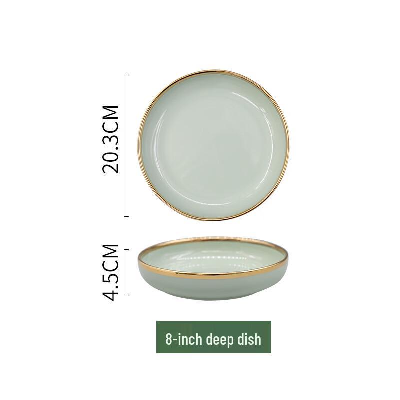 Ruhan Nordic Light Luxury Gold Rim Ceramic Deep Plate