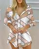 European & American Style Ruched V-Neck Button Print Long Sleeve Slimming Shirt Dress