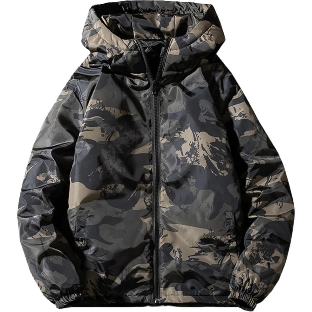 Aspersio Camouflage Long Military Warm Outerwear for Street American Military Mountain Nylon Outer Dark Green Zip-Up Hoodie, Sleeve, Hooded, Style,