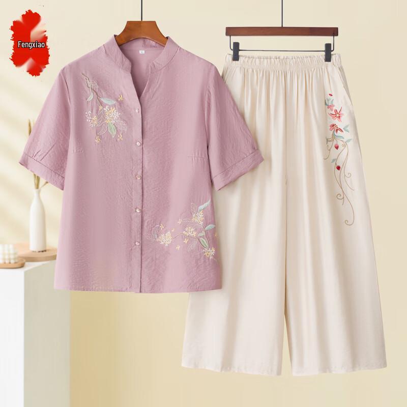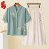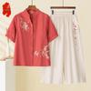 Ensemble deux pièces d'été en coton et lin pour femmes d'âge moyen