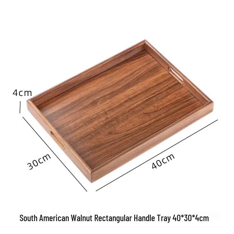 OLOEY Walnut Wood Rectangular Serving Tray with Handles