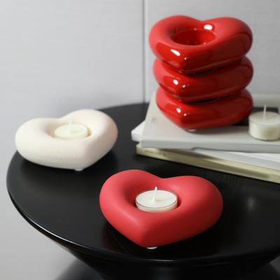 Porte-bougies en forme de cœur Rouge/Blanc Matériau Céramique Support à Bougies Romantique Table à Manger