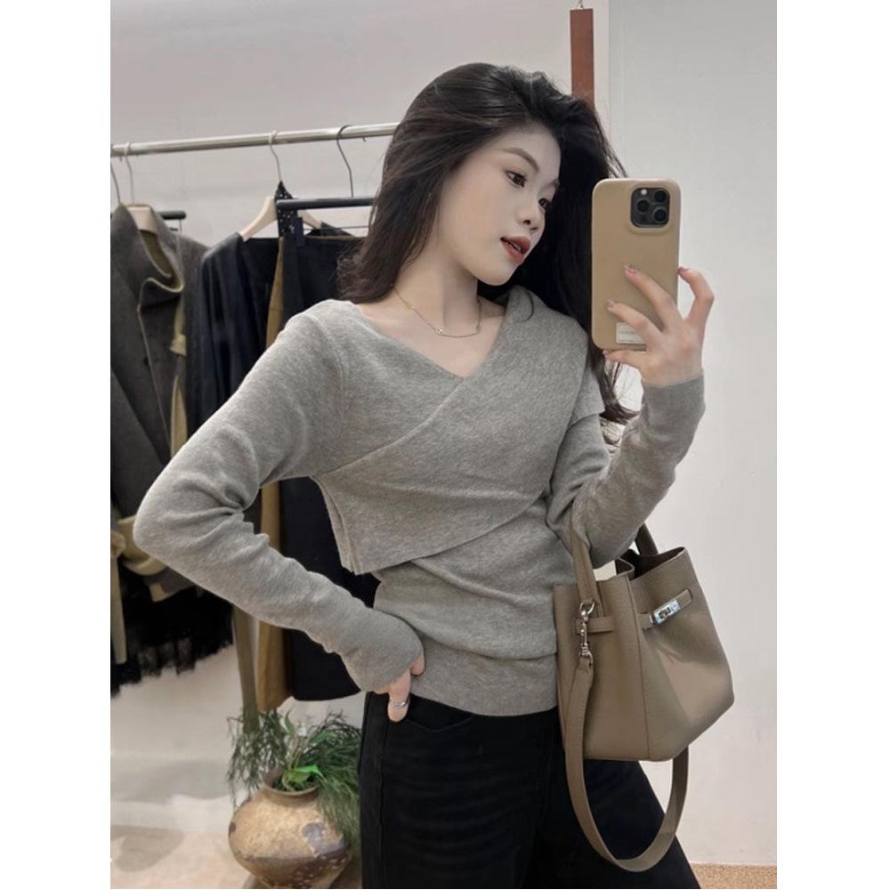 Découvrez un haut élégant et confortable spécialement conçu pour la femme moderne. Ce haut tricoté à manches longues est doté d'une couche intérieure amincissante, idéale pour une silhouette élégante.. Fabriqué en spandex de haute qualité, il offre flexibilité et un ajustement parfait.. Sa couleur grise sophistiquée et son motif uni en font un ajout polyvalent à n'importe quelle garde-robe.. Le design à col croisé avec un décolleté en V ajoute une touche élégante, le rendant parfait pour les occasions décontractées comme semi-formelles.. Adoptez la nouvelle collection de printemps et profitez d'une silhouette flatteuse à chaque fois que vous la portez.