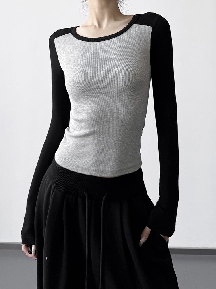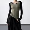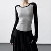 T-shirt à Manches Longues Color-Block Coupe Ajustée pour Femme - Design Élégant Hiver 2025 pour Porter Seul ou en Couche