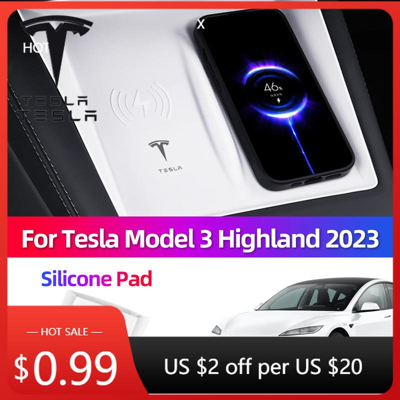 Autocollant de Voiture Pour Tesla Model 3 Y Juniper Highland 2023-2025 Rafraîchi Chargeur Sans Fil Pad en Silicone Console Centrale de Voiture Pad Antidérapant Voiture