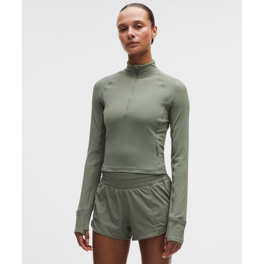 Lululemon It S Rulu Ribbed Cropped Half Zip Updated Willow Leaf