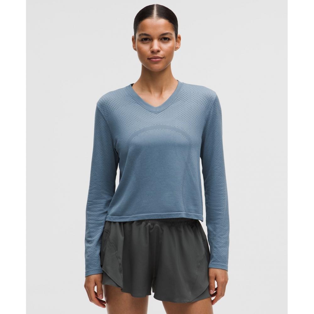 Lululemon Swiftly Open Hole V Neck Long sleeVe Shirt Steel Blue Steel Blue