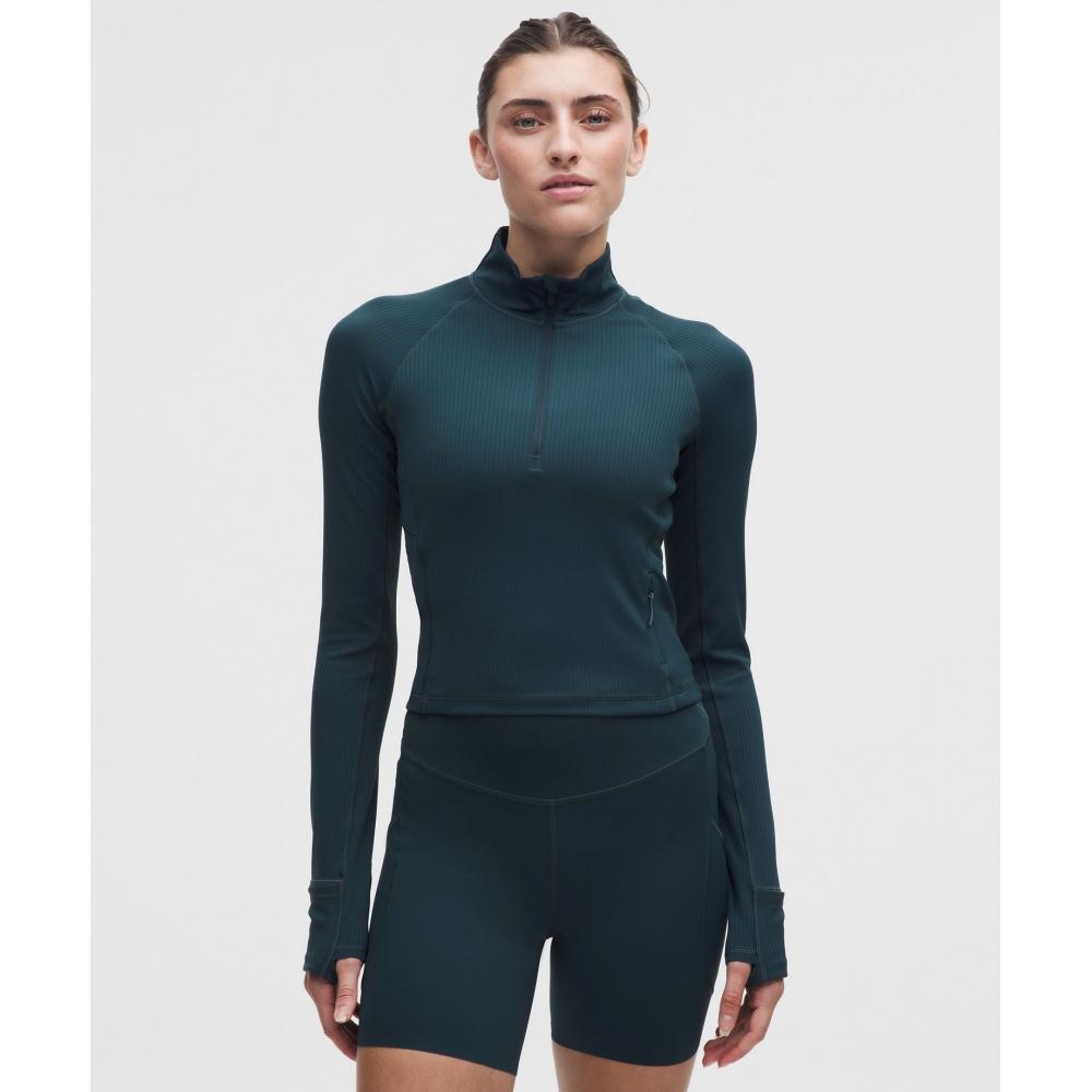 Lululemon It S Rulu Ribbed Cropped Half Zip Updated Indochine Blue