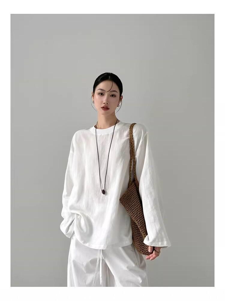 Haut décontracté à manches longues en chanvre blanc Tencel lin pour femme Rain Dew