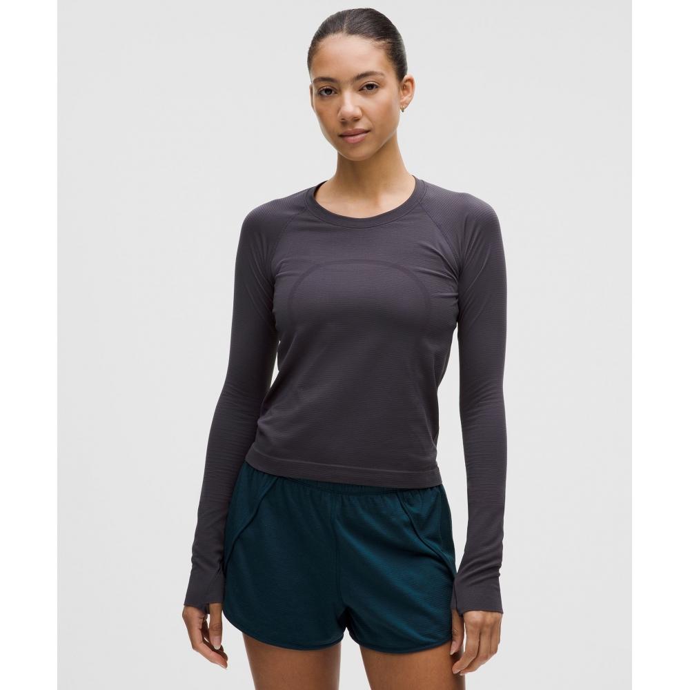 Lululemon Swiftly Tech Long Sleeve Shirt 2.0 Waist Length Spandex Stripe Atmospheric Purple Coal