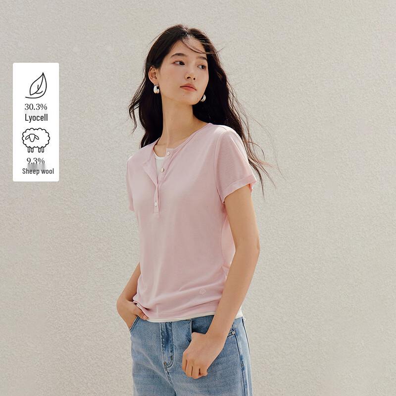 INMAN Women's Faux Two-Piece Wool Blend Henley T-Shirt