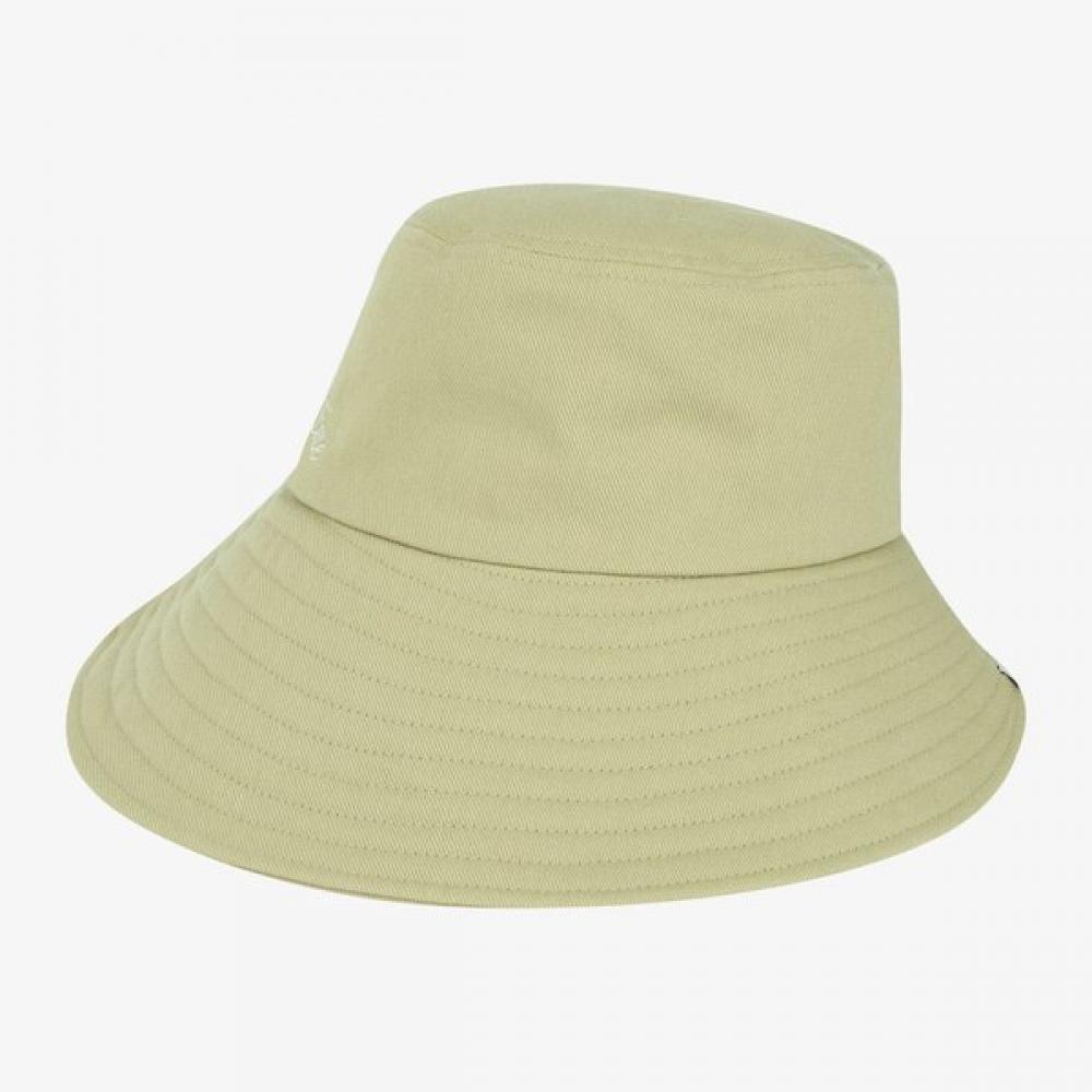 The North Face White Label Women's Flow Hat BEIGE features an embroidered logo point in a 2WAY bucket hat style. Made with durable cotton twill fabric, it maintains its shape when worn. The 2WAY design allows for versatility, letting the wearer switch between a short brim and a long brim. The internal sweatband is made with COOLMAX material, providing excellent moisture-wicking properties for a comfortable fit.