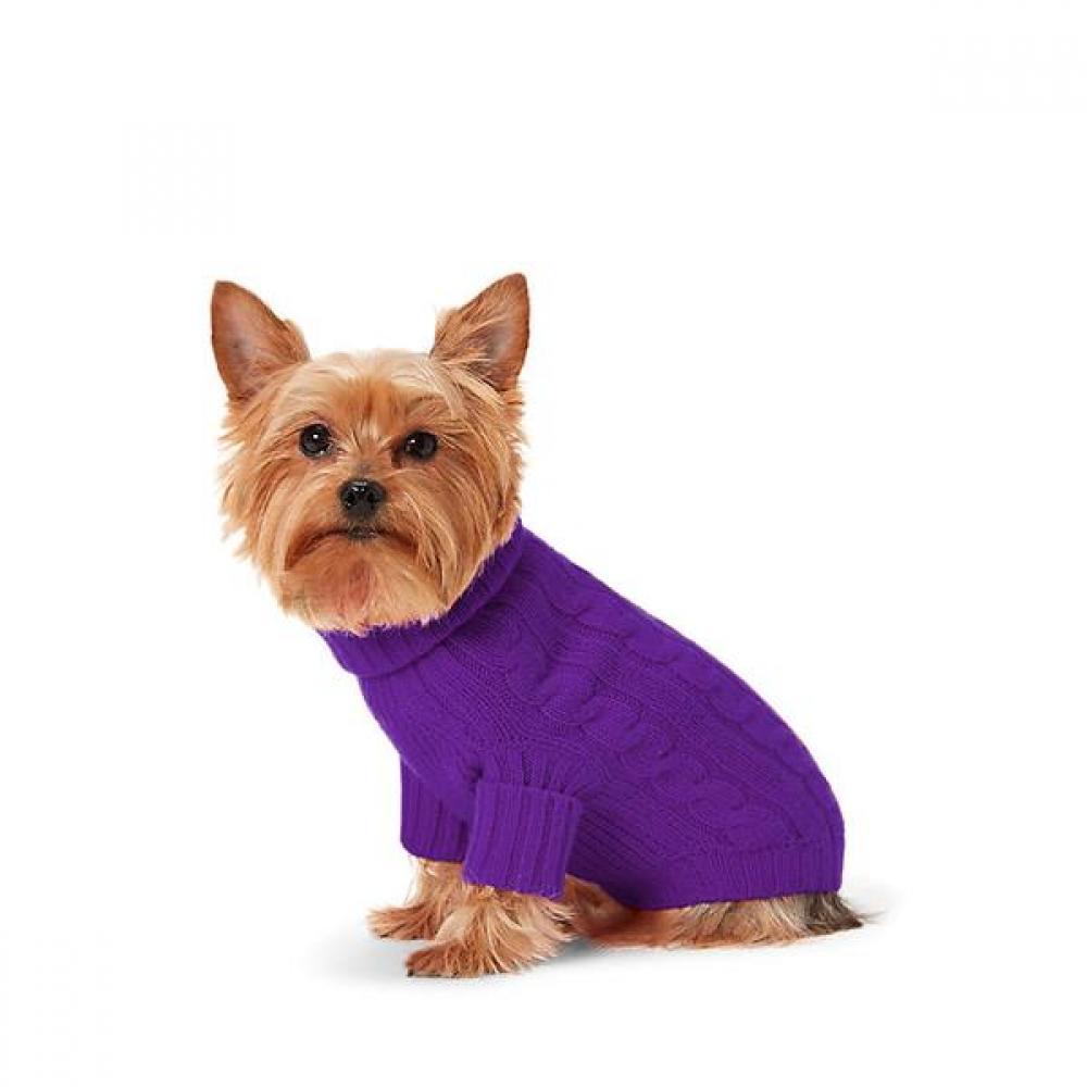 The Ralph Lauren Cable Cashmere Dog Sweater HMPOPAP5BD20004520 showcases the signature cable knit structure of Polo Ralph Lauren and is made from 100% soft cashmere. It features a hidden leash hole on the back and is available in the luxurious Royal Lilac color, reflecting sophistication and style.