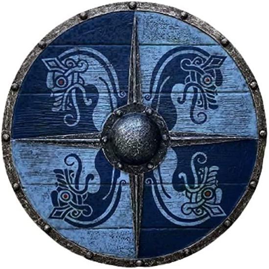 Le bouclier peut être utilisé comme support mural décoratif ou comme pièce fonctionnelle pour la reconstitution médiévale ou le GN.