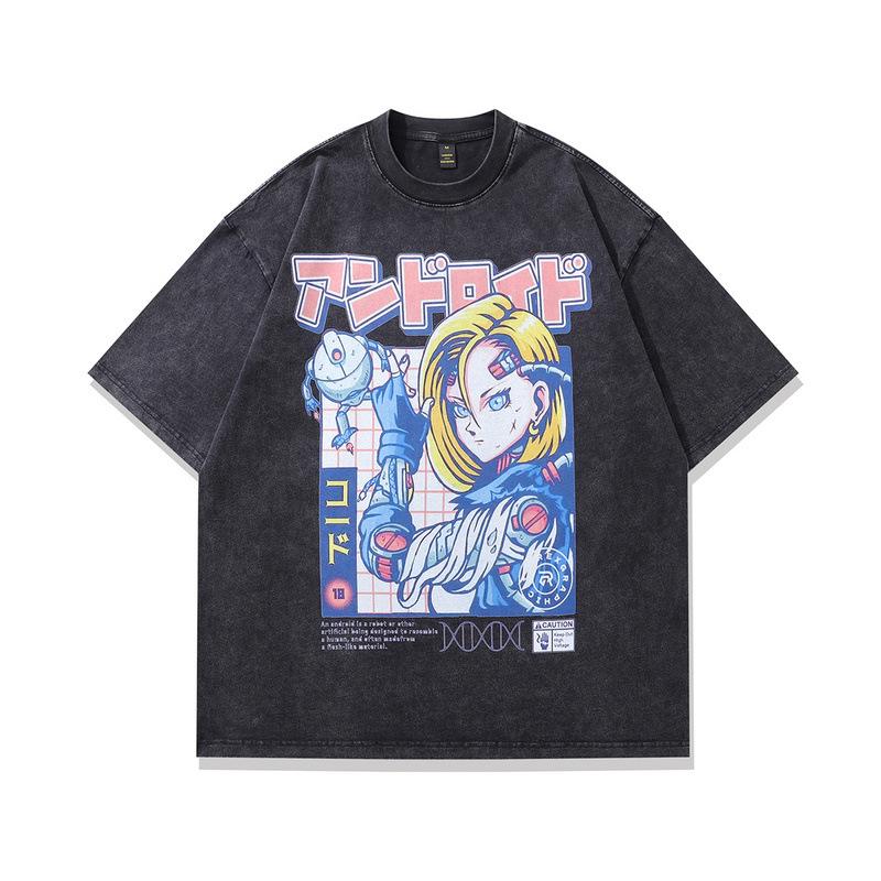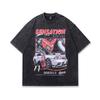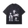 American Retro Trendy Brand T-Shirt Y2K Cartoon Printing Heavy Cotton Washed Short-Sleeved T-Shirt Men And Women Trendy