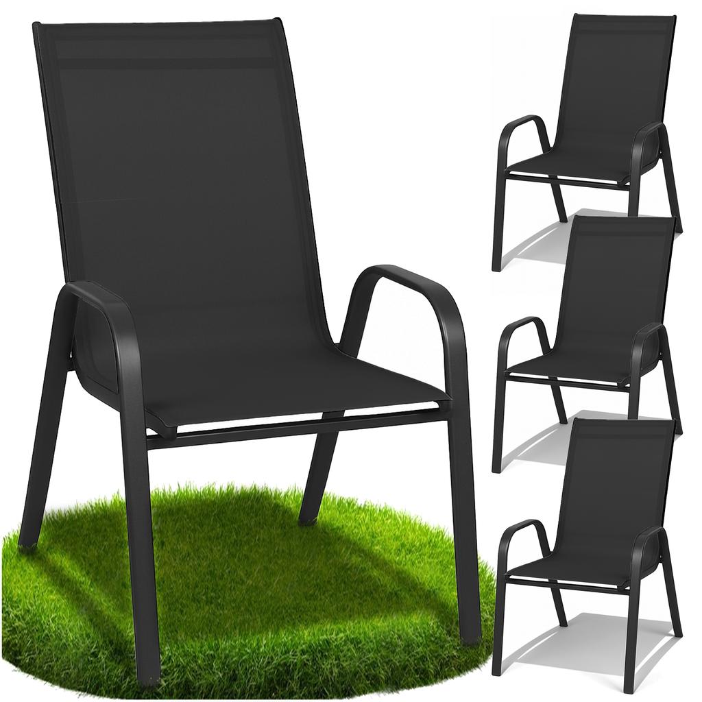 Black metal garden chair, terrace, balcony, armchair, terrace, strong, 4 pcs.