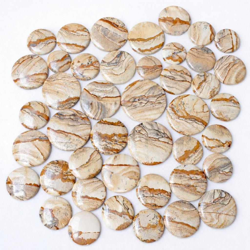 Natural Picture Jasper Round Mixed Size Cabochons – Bulk Gemstone Lot for Jewelry Making