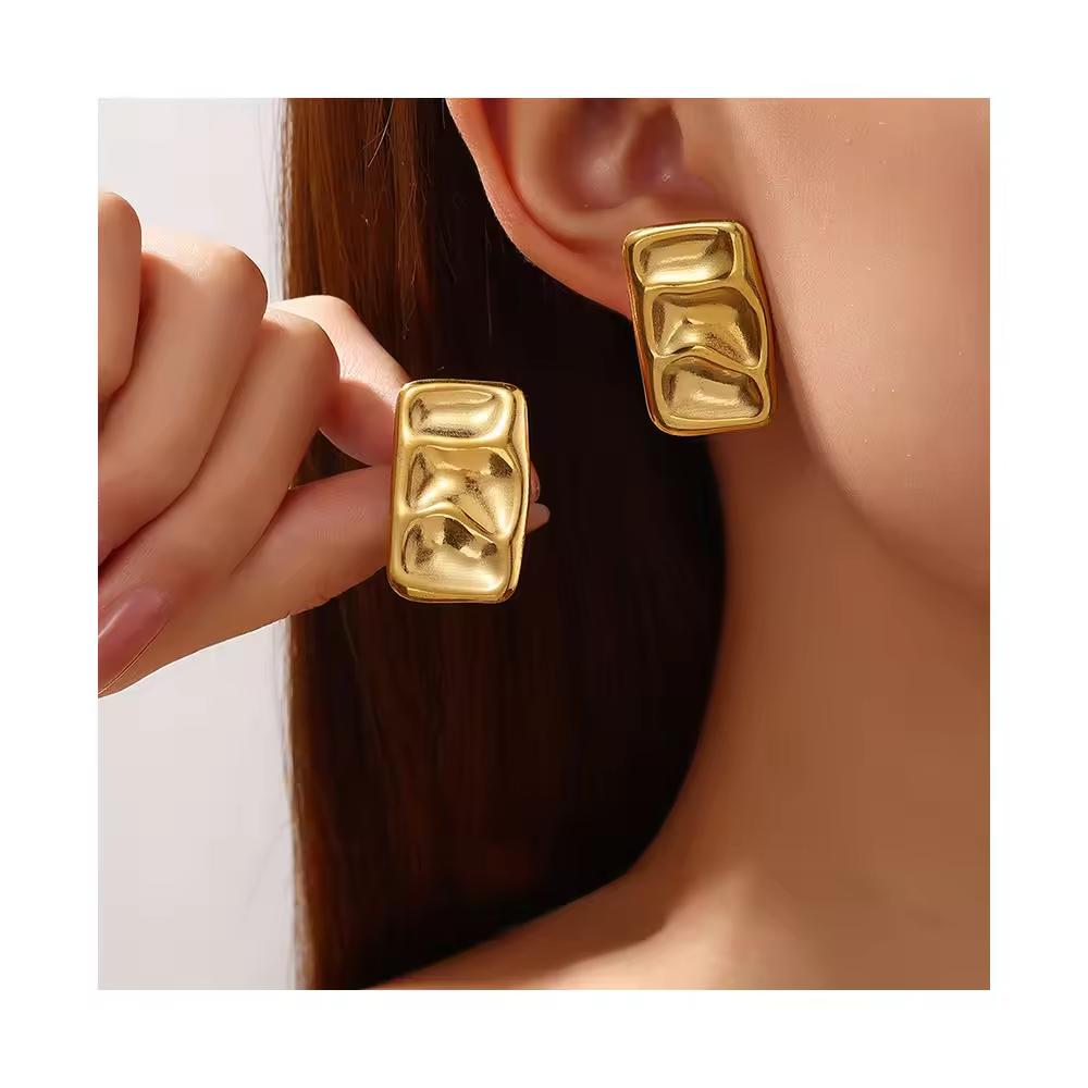Fashion Stainless Steel Flower Irregular Earrings Exaggerated Hypoallergenic Hammered Texture Stud Earrings for Women