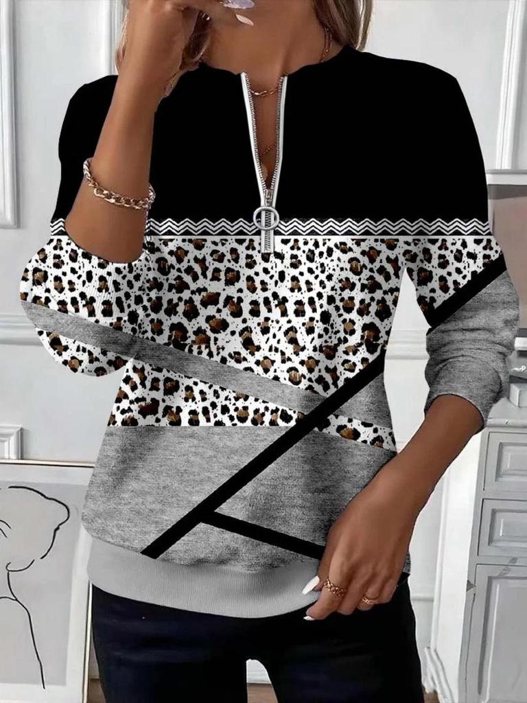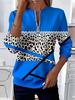 Women's European V-Neck Zipper Top - Autumn/Winter Long-Sleeve Print
