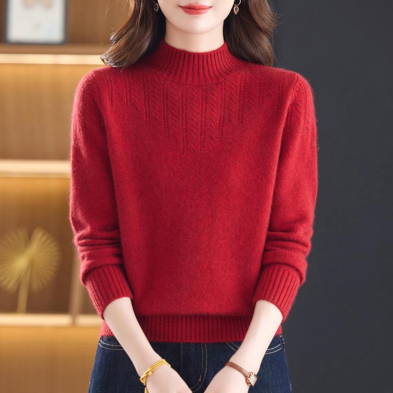 New Pure Wool Sweater for Middle-Aged & Elderly Women - Stylish, Warm, Half-High Collar, Thickened for Autumn/Winter