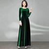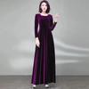 Noblewoman Autumn Golden Velvet Cinched Waist Long-Sleeved Dress with Large Hem