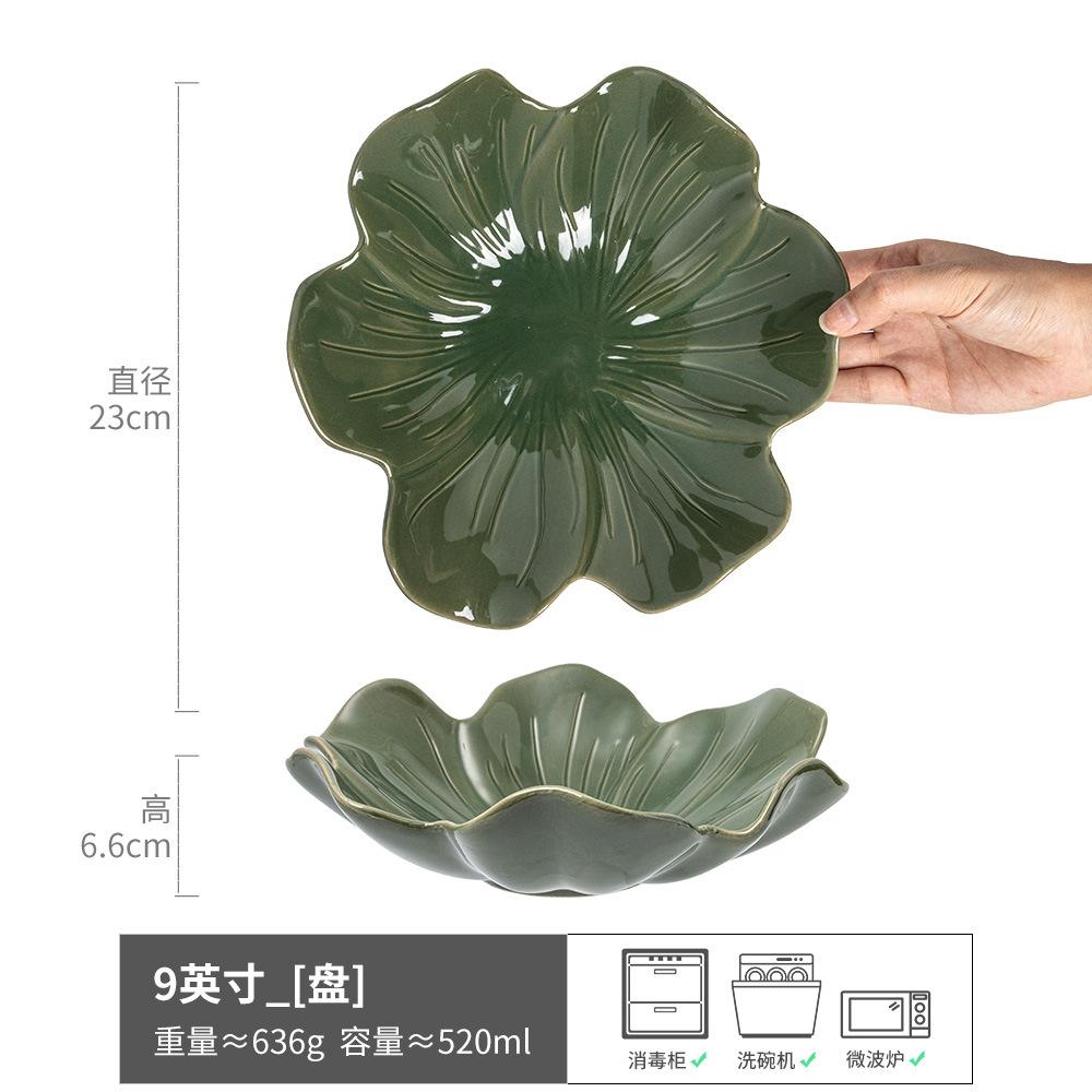 European Retro Ceramic Creative Lotus Leaf Plate Household Vegetable Plate Living Room Fruit Plate Candy Plate Homestay Restaurant Tableware Plate