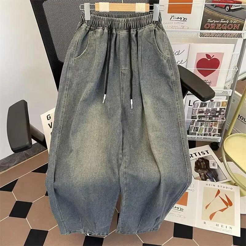 Men's Spring/Fall Vintage-Washed American-Style Relaxed Fit Drawstring Wide-Leg Harem Pants