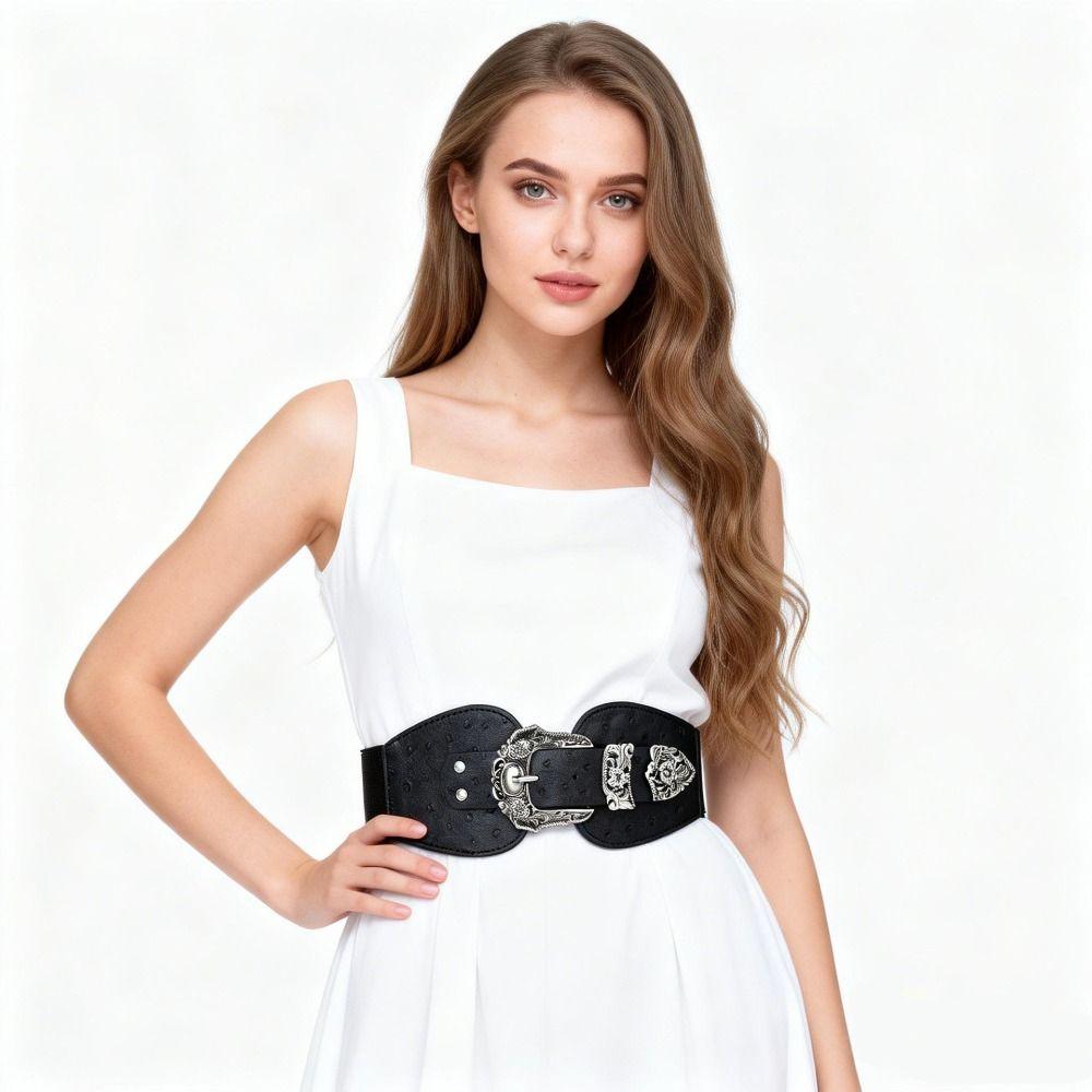 Boucle Rétro Sculptée Réglable Ceinture Élastique à la Taille Ceinture à Boucle Métallique Accessoire de Taille