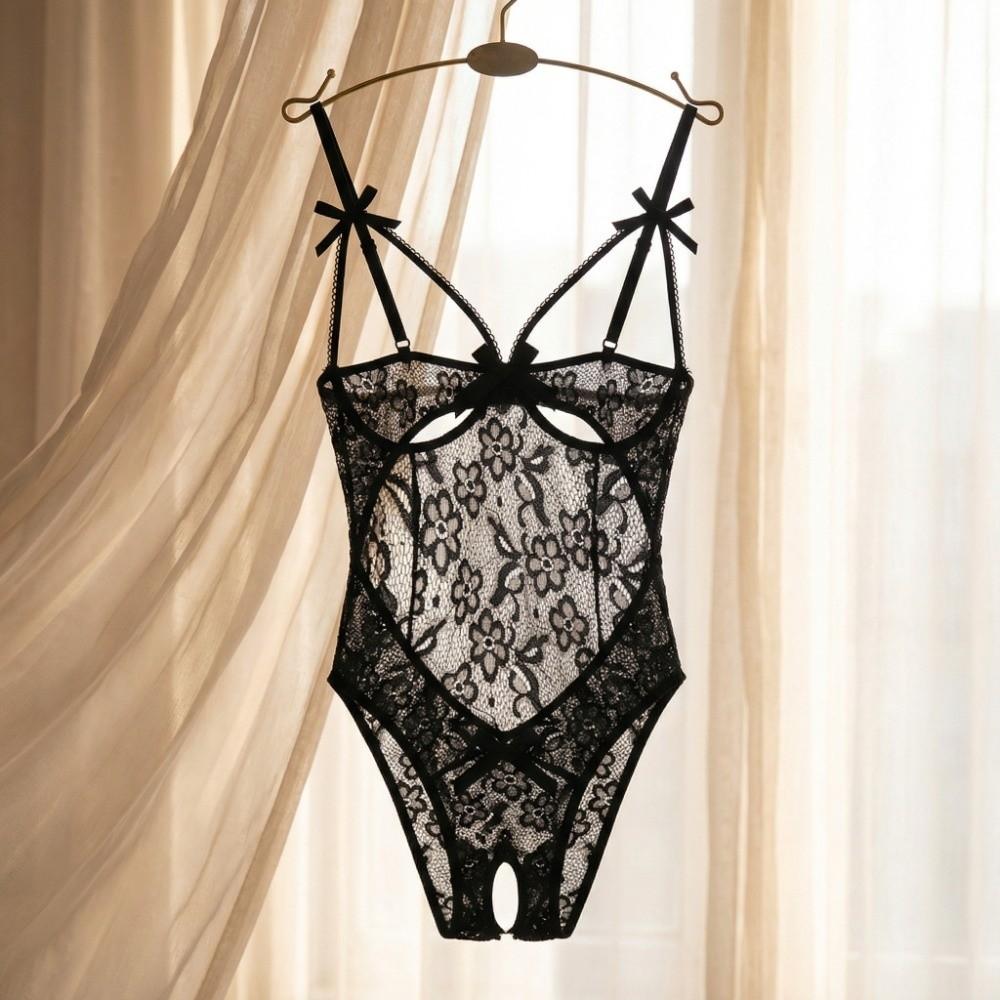 Open Crotch Lace Bow Bodysuit Mesh Hollow Lace Sling Nightwear Sweet Women Underwear Gifts