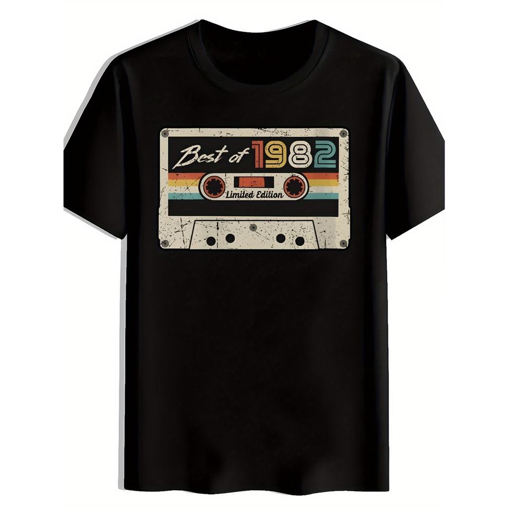 Men's Vintage 80s 90s Retro Cassette Tape T-Shirt Compatible for Nostalgic 80s Music Fans - Round Neck Short Sleeve Casual Summer Tee