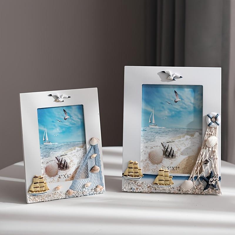 WTEMPO DIY Ocean Photo Frames Summer Shell Photo Frames Mediterranean Wooden Platform Frame Decoration Horizontal and Vertical