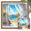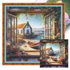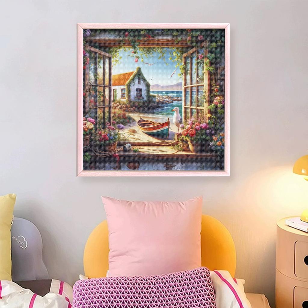 Window View Full 11CT DIY Stamped Needlework Embroidery Kit 40x40cm Printed Cross-Stitch Kits for Beginners Adults Home Decor