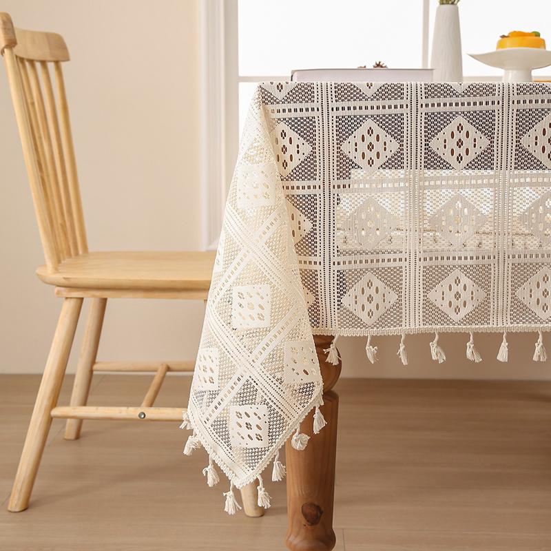 Gothic Hollow Lace Tablecloth Retro European American Rectangle Crochet Knitting Table Cloth with Tassel Home Decoration