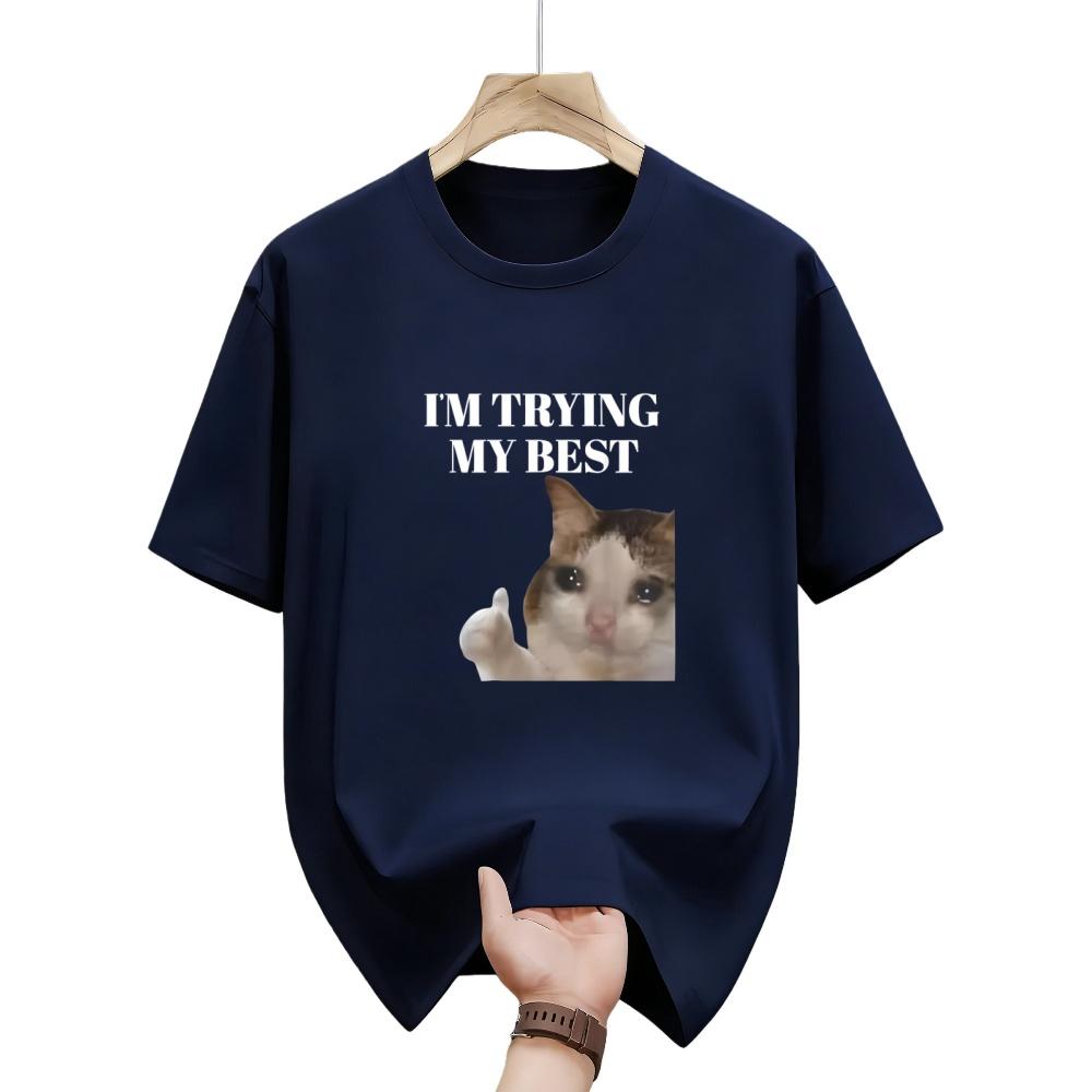J'essaie de mon mieux Chat qui pleure drôle Meme Coton T-shirt Pour Hommes Femmes Enfants Graphique Décontracté Col Rond T-shirts Hauts Chemisier Cadeaux