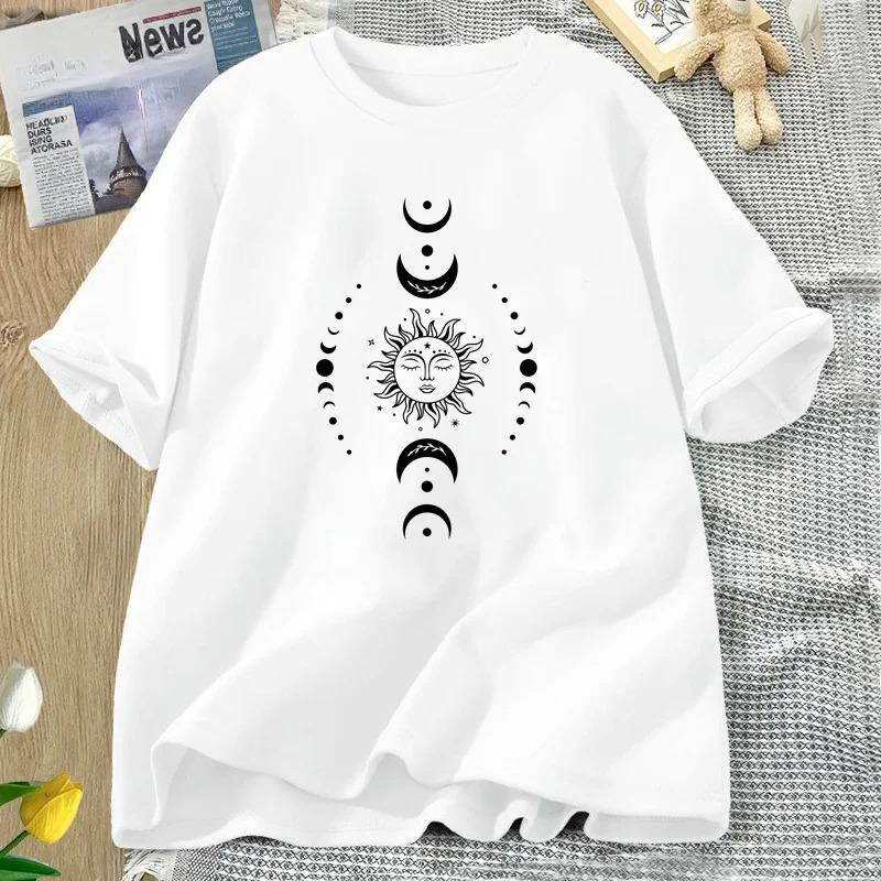 Sun and Moon Pritned T Shirt Celestial Boho Mystical Tshirt Magic Moon Short Sleeve Tshirt Women Harajuku Tee Streetwear